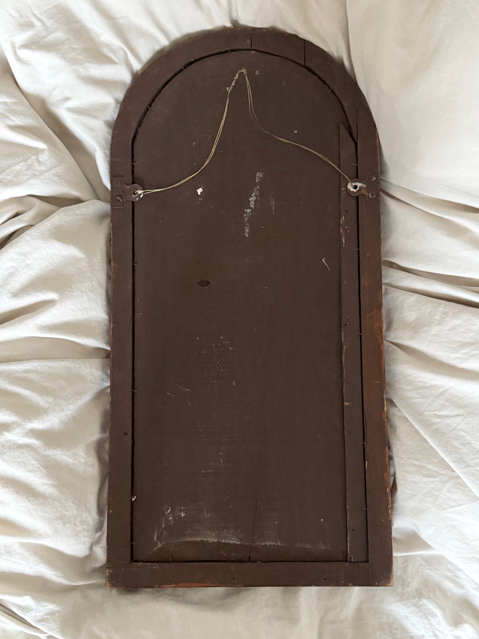 Small Antique Wall Mirror with Arched Frame and Bevelled Glass